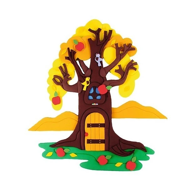 Au cours de l’année les enfants pourront modifier les couleurs, enlever les feuilles, … et au printemps ajouter les grosses pommes.