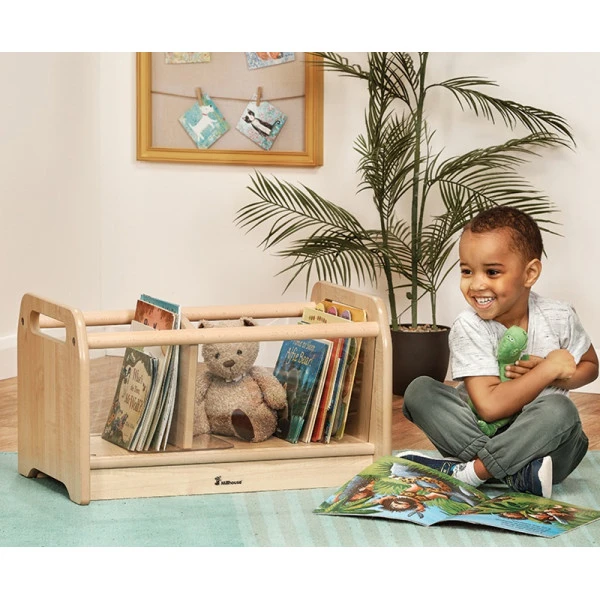 Le bac à livres fonctionnel est facilement accessible même pour les petits en crèche, pour qu’ils apprennent dès leur plus jeune âge à se servir, ranger, … en tout autonomie.