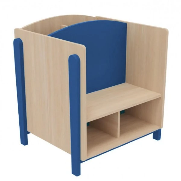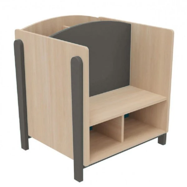 Adapté pour une utilisation dans un établissement scolaire et périscolaire, le banc espace lecture permet à 2 enfants de s’y installer et de ranger les livres et albums derrière et sous l’assise.