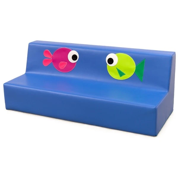 La banquette en mousse (3 places) pour crèche est décorée d’un POISSON violet et d’un POISSON vert ; cette banquette en mousse accueillera les enfants dans les moments de détente, de découverte et de repos.