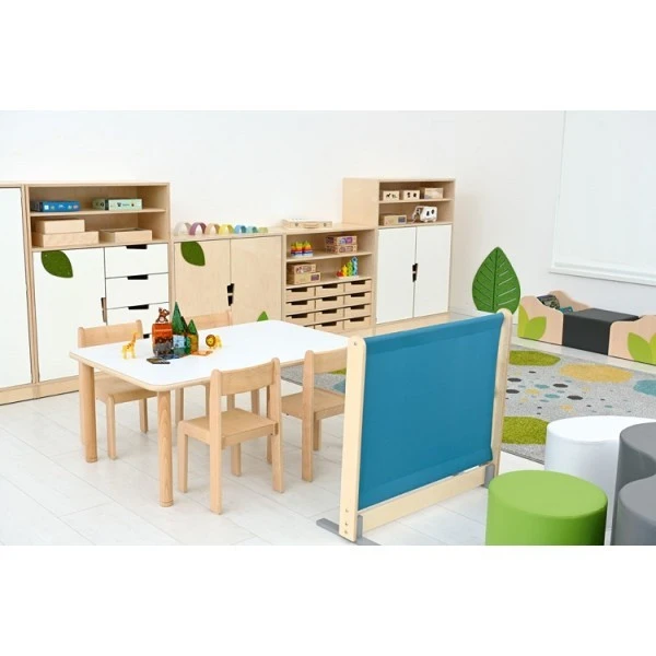 Auto stable et légère, la barrière de délimitation mobile permet de proposer un aménagement flexible aux structures qui accueillent les enfants.