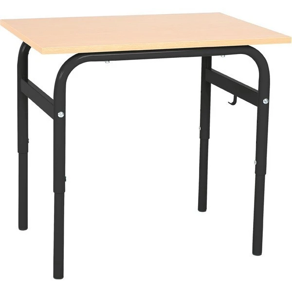 Le piètement se compose d’un tube métallique finition Epoxy avec un système pour régler la table en hauteur et un crochet pour le cartable.