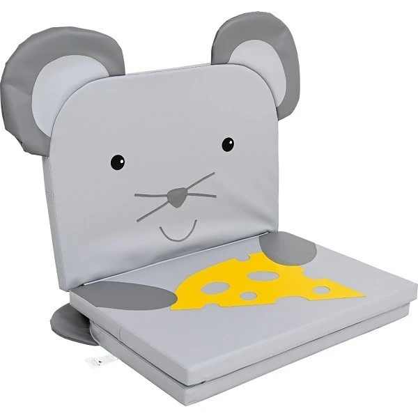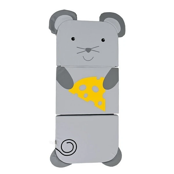 La chauffeuse matelas enfant est en trois pièces et représente une souris avec pattes, oreilles et fromage.
