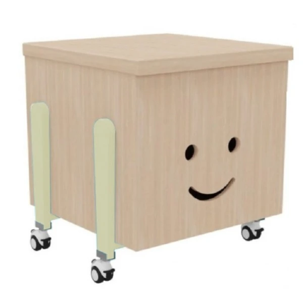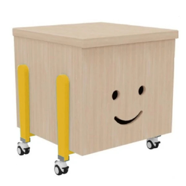 Afin de rendre l’espace des enfants plus amusant, le coffre est décoré avec une tête qui sourit et est disponible avec des pieds dans 6 couleurs différentes.
