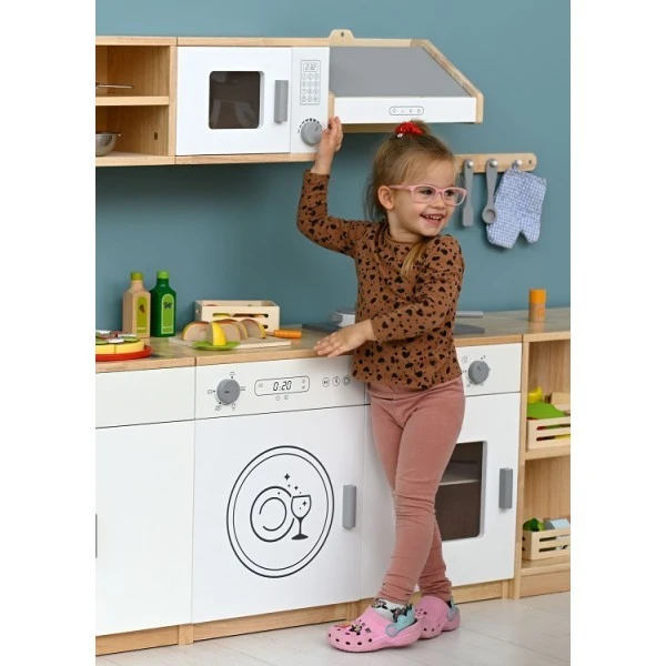 Vous pouvez combiner la cuisinière en bois pour enfant avec les références de la même gamme : évier en bois enfant, micro onde en bois enfant, frigo en bois enfant…