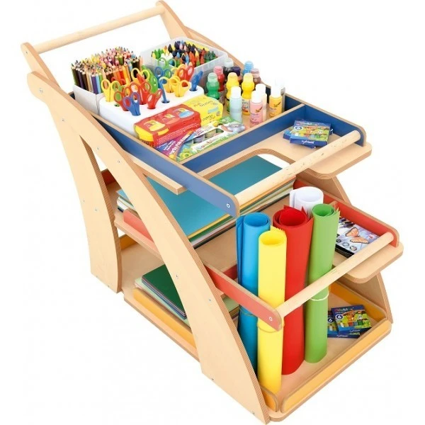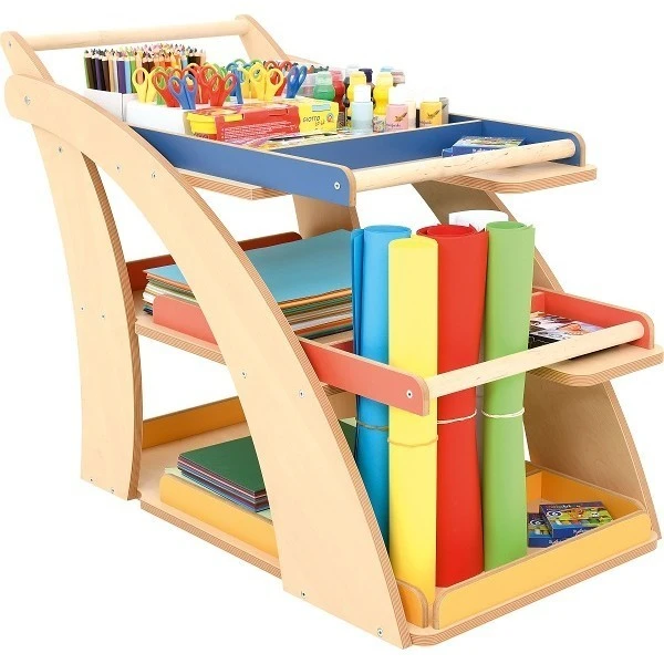 La desserte en bois conçue pour les activités manuelles est fonctionnelle, elle propose de nombreux rangements et est mobile.