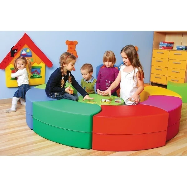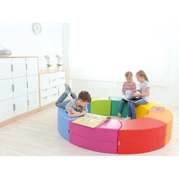 Cet ensemble de mobilier en mousse coloré est composé de 8 poufs incurvés PVC avec une hauteur d’assise de 35 cm.