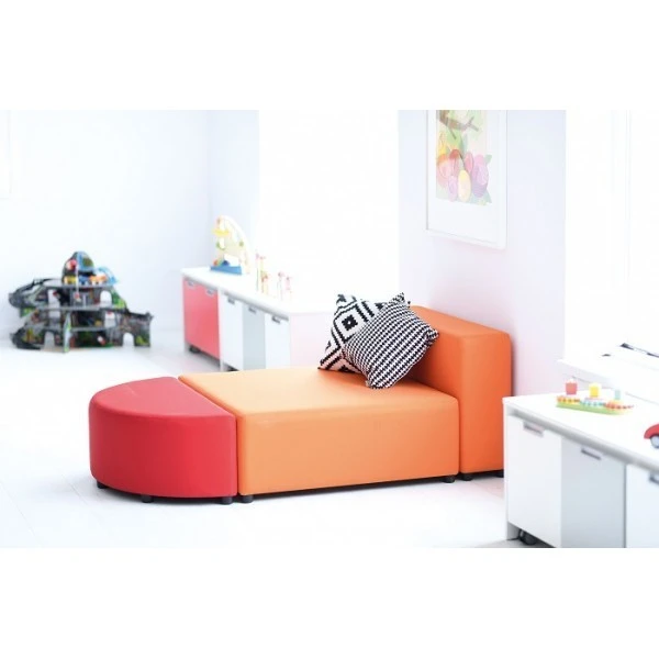 Cet ensemble de banquettes modulables permet d’aménager un espace détente ou un espace d’attente pour les enfants.
