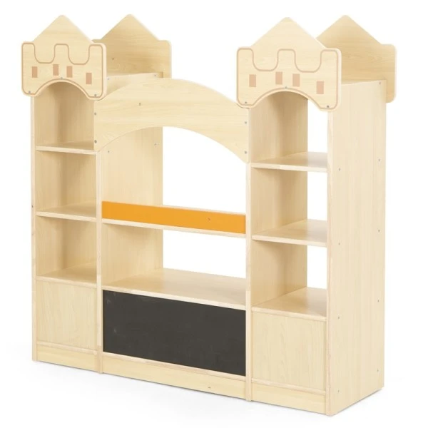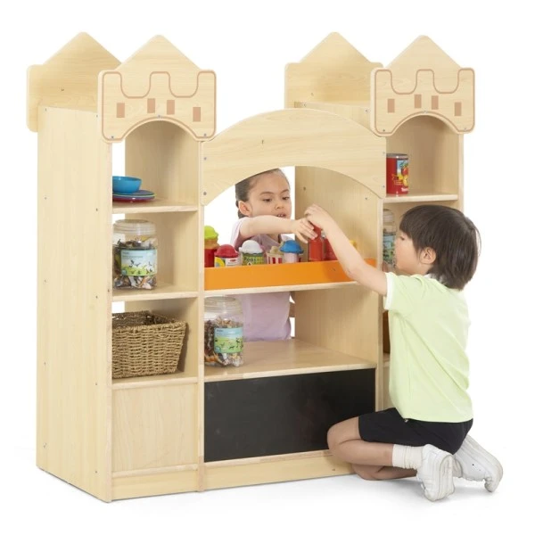 L’étagère de jeu château fort est un meuble ludique en bois massif conçu pour les salles de classe maternelle et les établissements périscolaire, et peut convenir pour différentes utilisations : meuble pour les jeux d’imitation ou meuble de rangement !