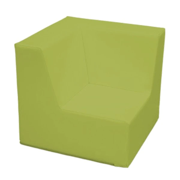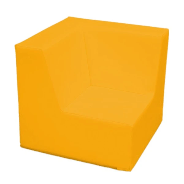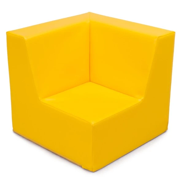 Le fauteuil d’angle en mousse et PVC coloré a une hauteur d’assise de 17 cm ; cette hauteur est adaptée aux enfants âgés de – de 3 ans.