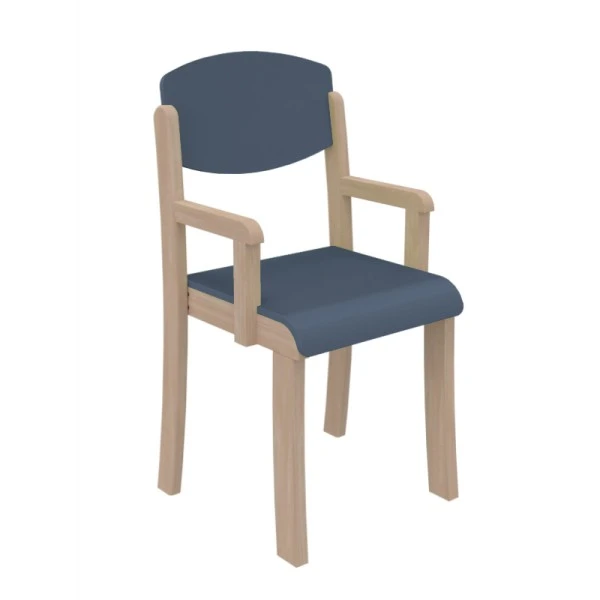 Le fauteuil enfant bois – T1 à T3 a une structure hêtre massif finition vernis polyuréthane avec assise et dossier en contreplaqué moulé d’épaisseur 10 mm.
