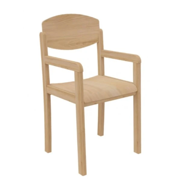 Le fauteuil enseignant avec accoudoirs a une structure hêtre massif finition vernis polyuréthane avec assise et dossier en contreplaqué moulé d’épaisseur 10 mm.
