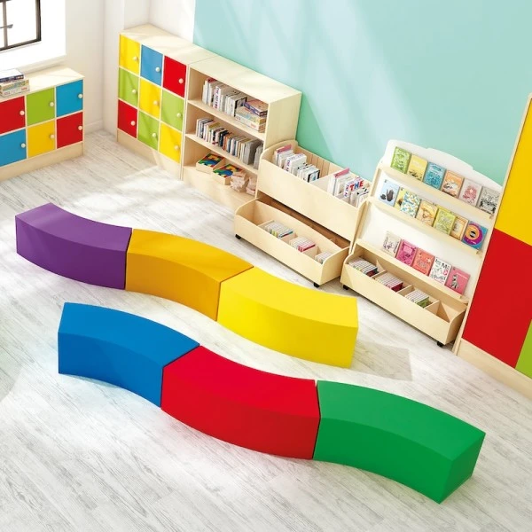 L’ensemble de 6 banquettes en mousse peuvent se combiner à l’aide de velcros pour regrouper les enfants et adultes autour d’une activité commune.