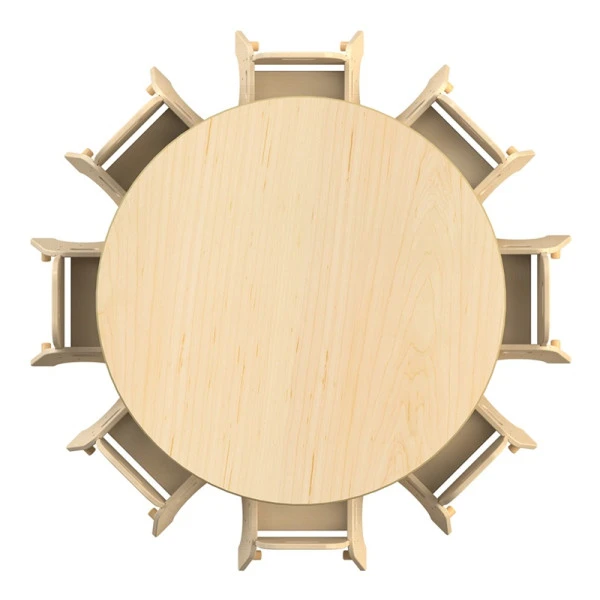 Cet ensemble table ronde et fauteuils en bois pour les tout-petits est composé de :