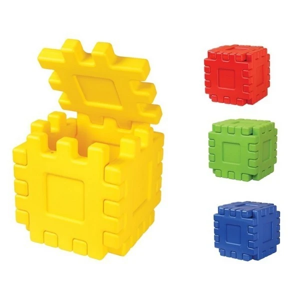 Le jeu géant de construction est composé de 12 pièces (dim. 37 x 37 cm) qui peuvent aussi se transformer en tabouret cube.