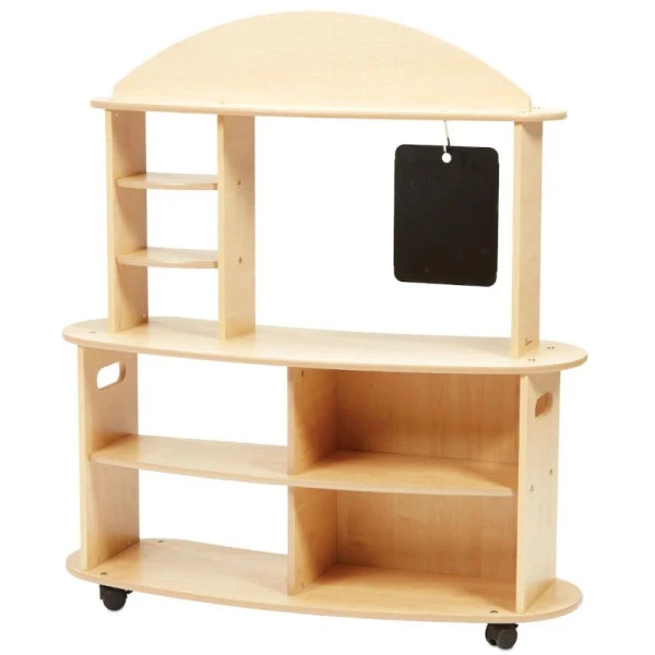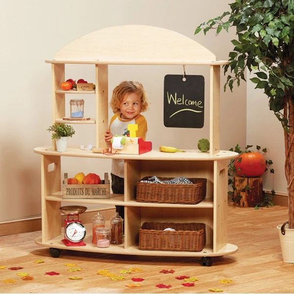 Le jeu « la marchande » sur roulettes est un des jeux d’imitation incontournables pour l’aménagement d’une salle de classe maternelle flexible.