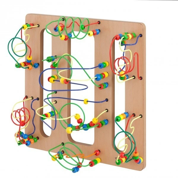 Le jeu mural boulier géant est constitué de billes à faire circuler sur des fils solidement fixés à une base en bois ; 3 enfants de 2 à 8 ans peuvent jouer simultanément.