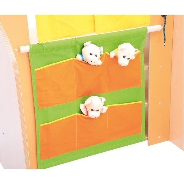 La maison conte de fée offre de nombreux rangements : 3 étagères et pochettes.