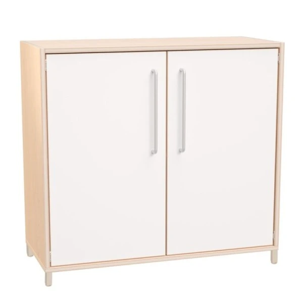 Le meuble 2 étagères et portes est disponible avec des portes de 2 couleurs et 3 finitions pour les pieds.