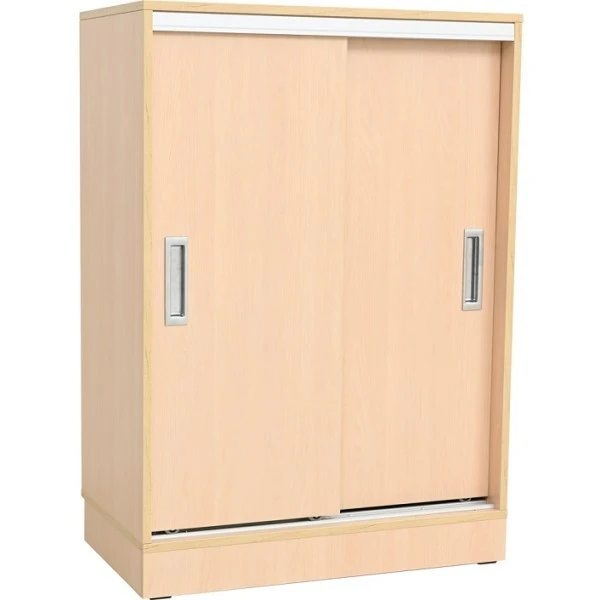 Le meuble de rangement est fabriqué avec une finition érable et est équipé de 2 portes coulissantes.