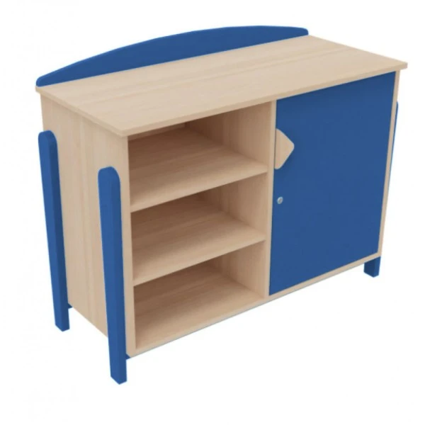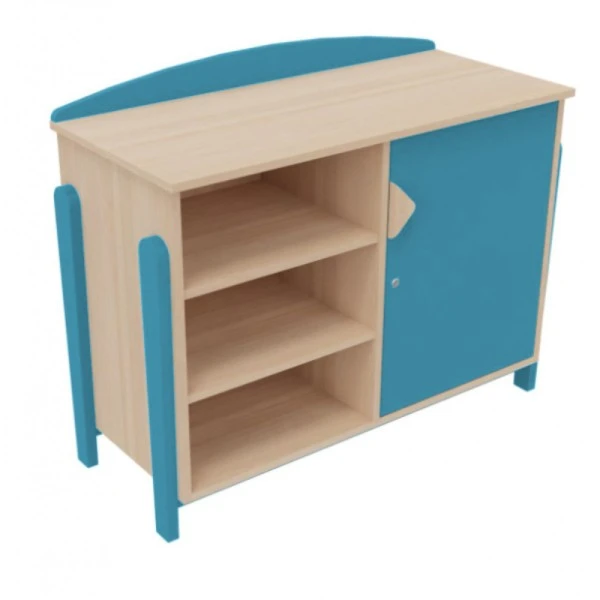 Le meuble bas pour crèche et établissement scolaire ou périscolaire est disponible en 6 couleurs sur le site e-commerce et en 2 finitions (1 ou 2 portes).