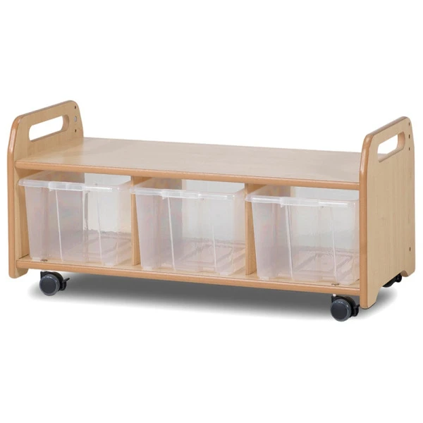 Le meuble bas sur roulettes avec bacs rangement est l’équipement indispensable pour aménager un espace activités flexible.