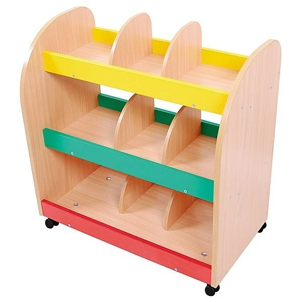 La petite bibliothèque a 4 roulettes avec frein pour qu’elle puisse se déplacer facilement au sein d’un établissement scolaire ou périscolaire.