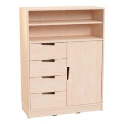 Le meuble avec 32 bacs de rangement peut être installé dans l’espace d’accueil d’une crèche ou d’une école maternelle, mais aussi dans l’espace jeux d’une structure petite enfance, d’un établissement scolaire ou d’un établissement périscolaire.