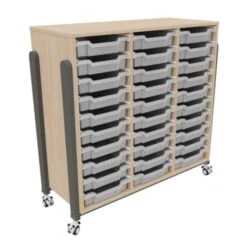 Le meuble de rangement crèche/école existe aussi avec 36 bacs en plastique : meuble avec 36 bacs