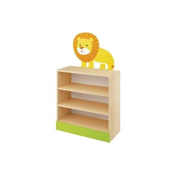 Le meuble sur le thème de la savane est composé de 3 étagères et est décoré d’un lion.