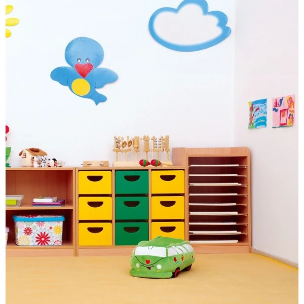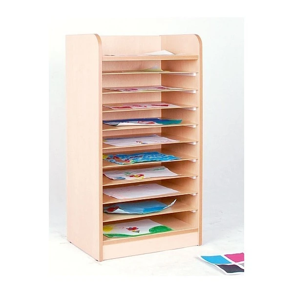 Le meuble séchoir à dessins a 10 tablettes avec glissières pour sécher ou ranger les créations des enfants (feuille A3).