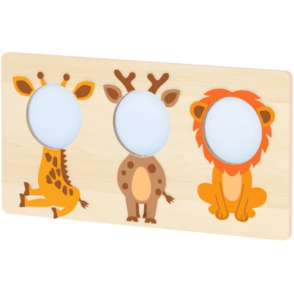 Le jeu mural ludique avec animaux offre aux enfants la possibilité de s’observer à travers différents animaux : la girafe, le cerf et le lion.