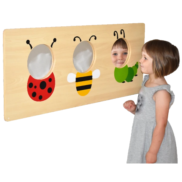 Le panneau mural miroir ludique avec insectes est parfait pour aider les enfants à se voir dans un miroir, ou à travailler sur des exercices de prononciation par exemple.