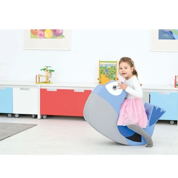 Le jeu à bascule en mousse oiseau pour espace enfant intérieur est aussi disponible en beige : assise oiseau à bascule