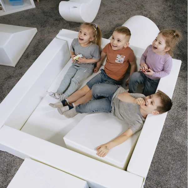 Le pack motricité espace multisensoriel est composé de 12 blocs mousse blancs et 1 piscine à balles :
