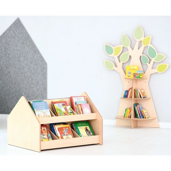Le meuble bibliothèque enfant permet d’optimiser l’espace dans le coin lecture d’une salle de classe, d’une ludothèque… et d’une salle d’attente.