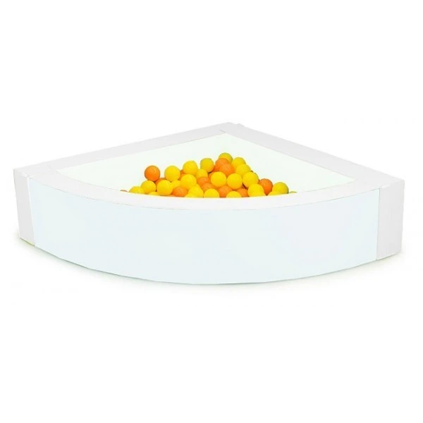 La piscine à balles quart de cercle est conçue pour être installée dans le coin d’une pièce pour optimiser l’espace de la salle multisensorielle.