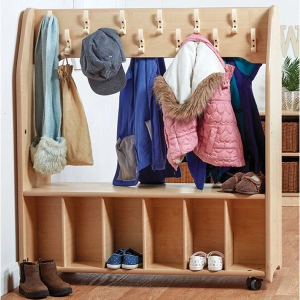 Le chariot vestiaire double face pour enfants permet de pouvoir l’installer le temps de l’accueil des enfants dans un établissement scolaire ou périscolaire, puis de le ranger.