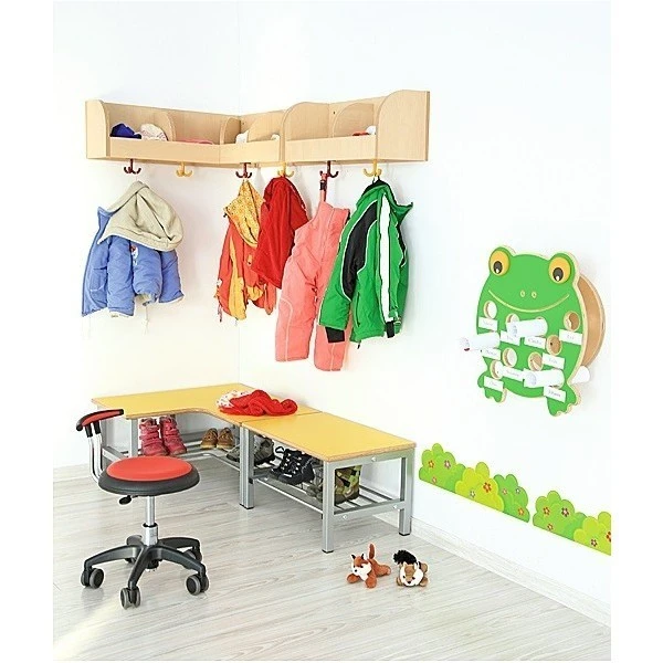 Le porte manteaux d’angle mural avec casiers a une capacité d’accueil de 4 enfants.