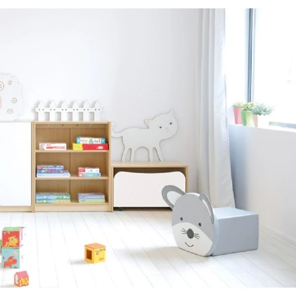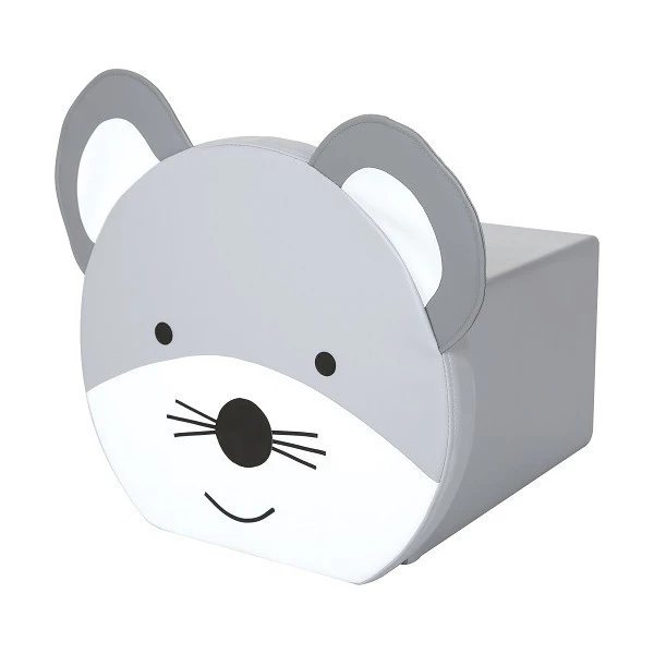 Avec sa tête de souris, le pouf carré pour espace enfant en collectivité créé un univers ludique !