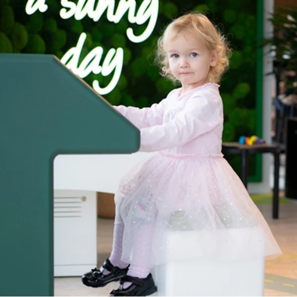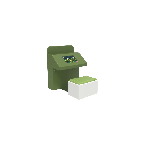 Le pupitre de l’écran interactif enfant est PERSONNALISABLE aux couleurs de votre agencement, charte graphique et/ou logo.