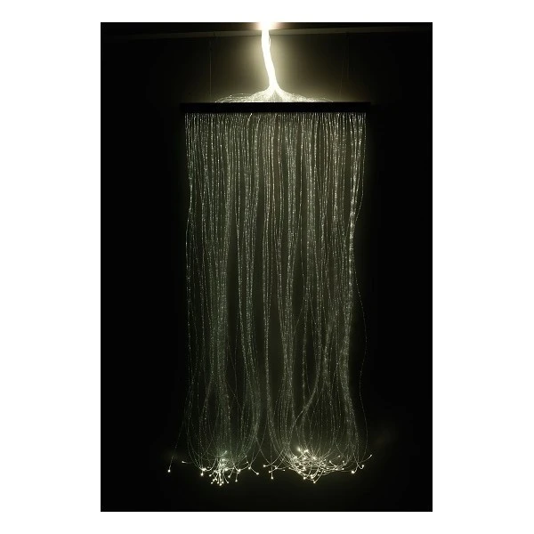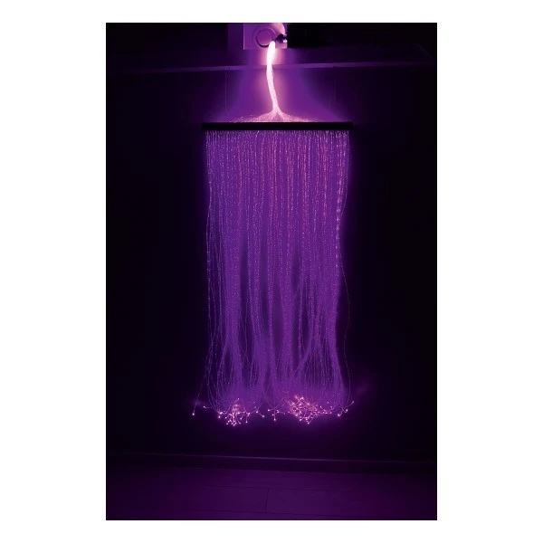 Le rideau de fibres optiques avec support mural peut être utilisé comme séparateur de pièce ou placé sur un mur créant ainsi une cascade lumineuse.