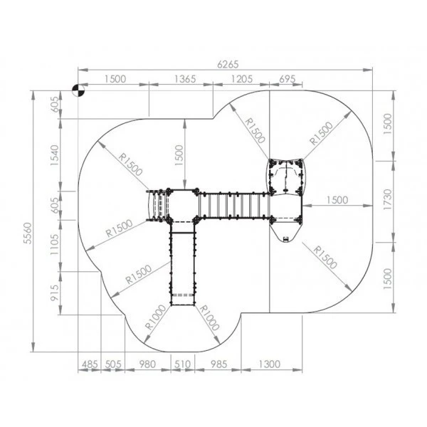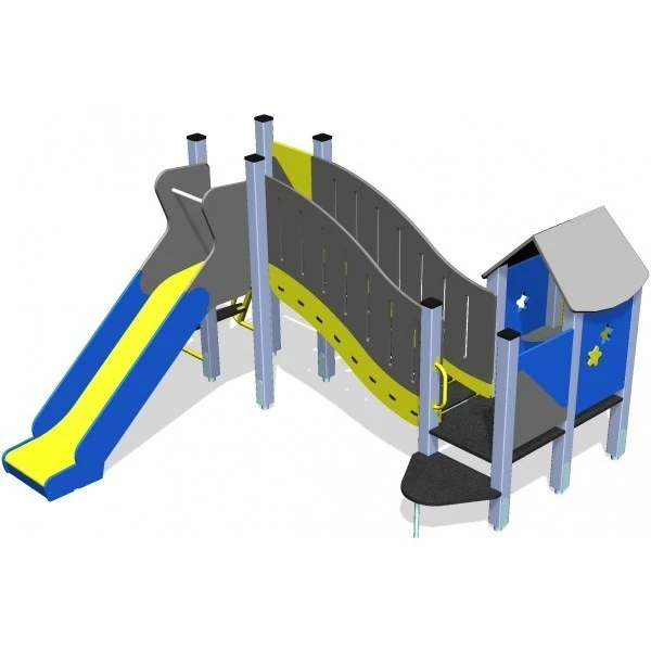 La structure peut accueillir jusqu’à 12 enfants et répond à la norme EN 1176-1.
