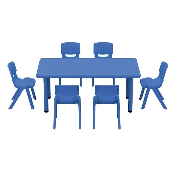 La table plastique rectangulaire enfant est aussi disponible en pack avec les chaises : table d’activité rectangle et chaises