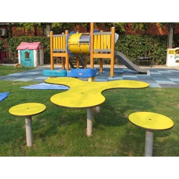 Elle permet de compléter une aire de jeux ou une cour de récréation, en installant un espace repos adapté à la morphologie des enfants.