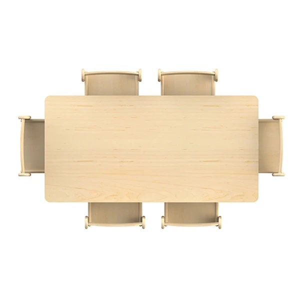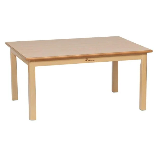 La table rectangle maternelle de la marque Millhouse a un plateau en panneau mélaminé et une structure en hêtre massif, pour répondre aux besoins d’une utilisation intensive par des enfants accueillis en collectivité.