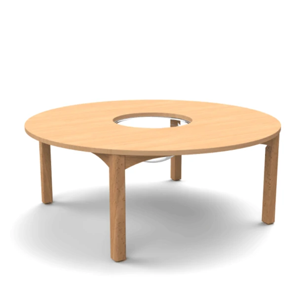 La table ronde avec bac à jouets a été conçue pour aménager l’espace jeux dans une crèche, une salle de classe maternelle et un centre de loisirs.