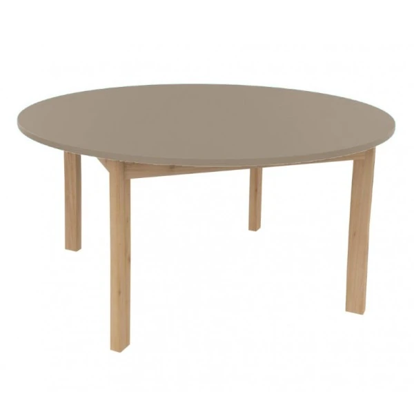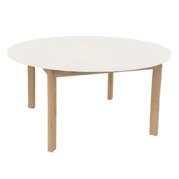La table ronde pour enfants a une hauteur fixe avec un plateau de diamètre 120 cm en panneau aggloméré d’épaisseur 22 mm, stratifié et contrebalancé avec alaises bois de 23 mm stratifié.