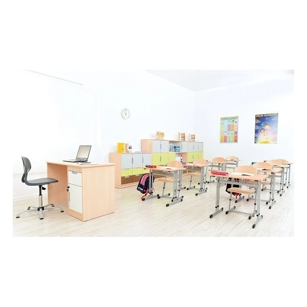 La table scolaire individuelle avec plateau ajustable peut équiper une école primaire, un collège, un lycée et une université.