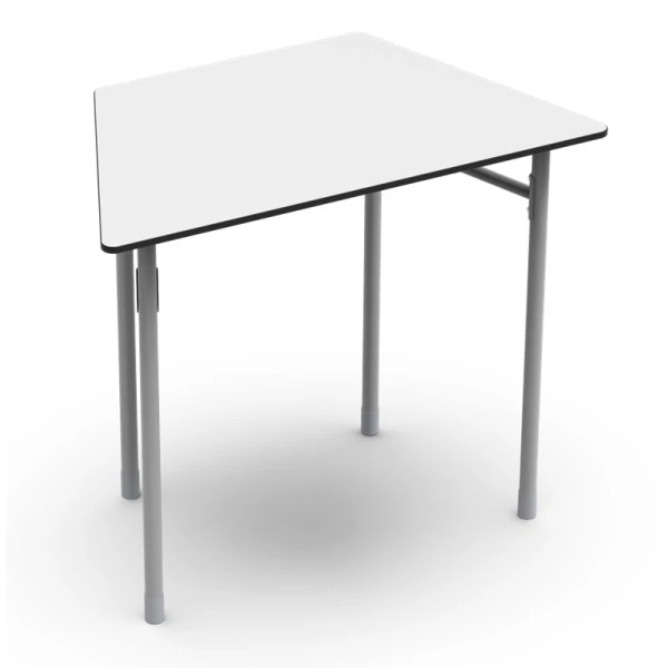 La table trapèze individuelle pour espace modulable est disponible avec 2 dimensions du plan de travail et plusieurs hauteurs :